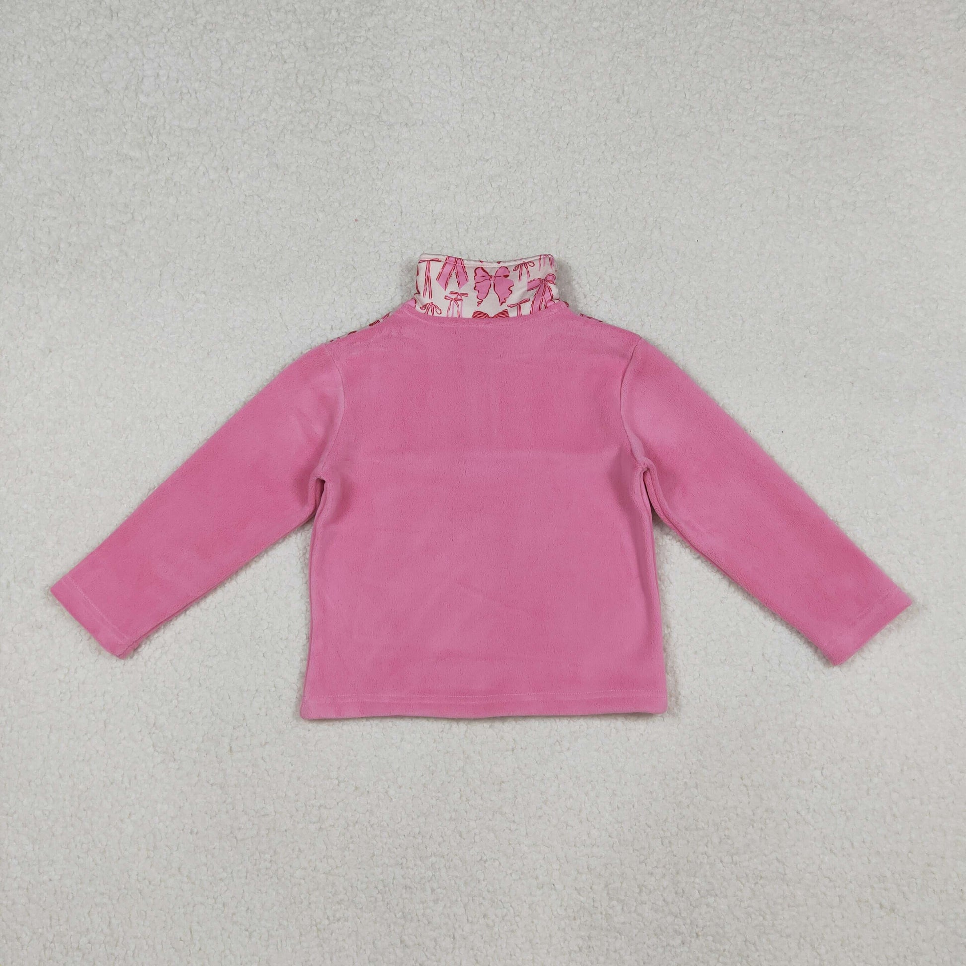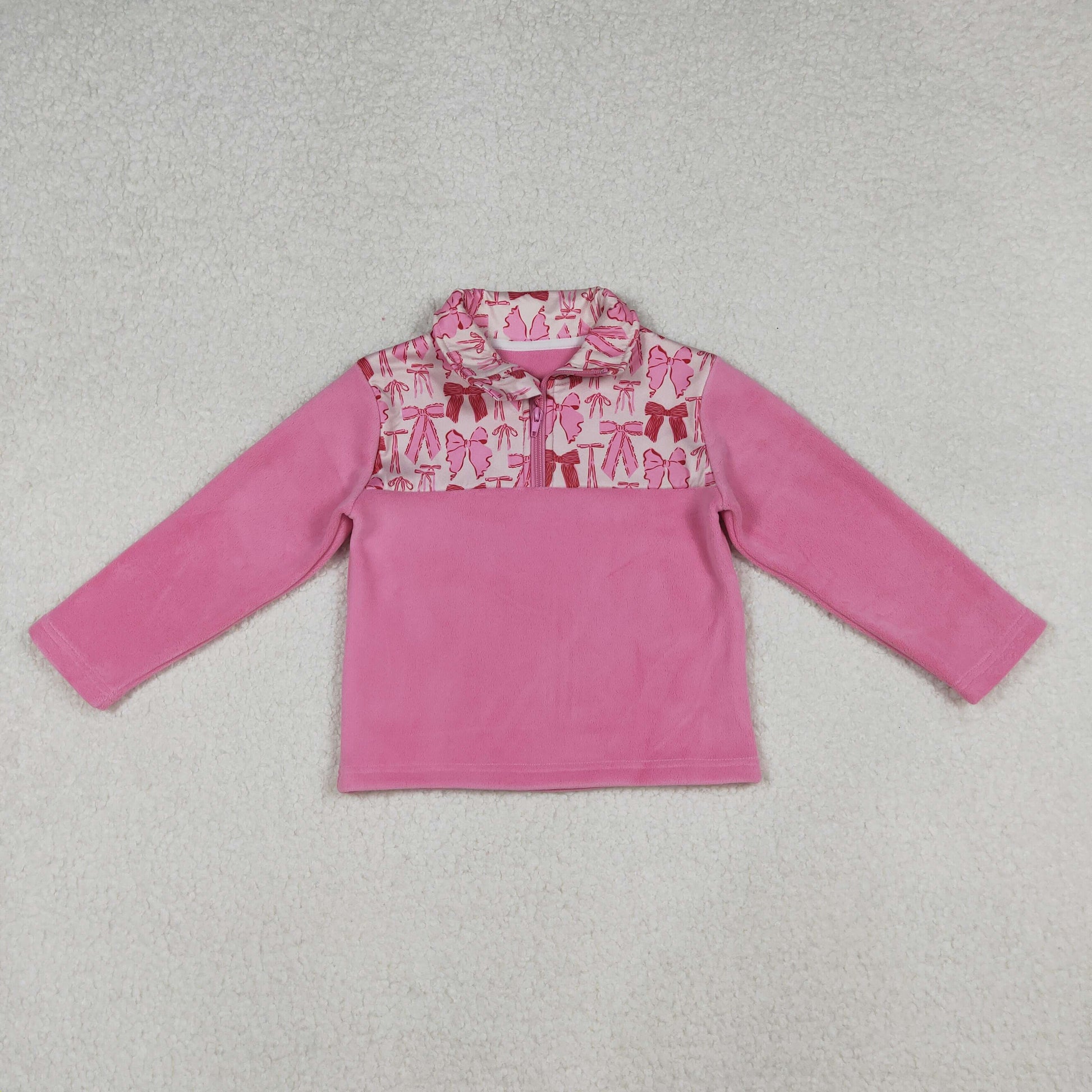 GT1149 Baby Girls Pink Bows Plaid Half Zipper Pullover Top D 926