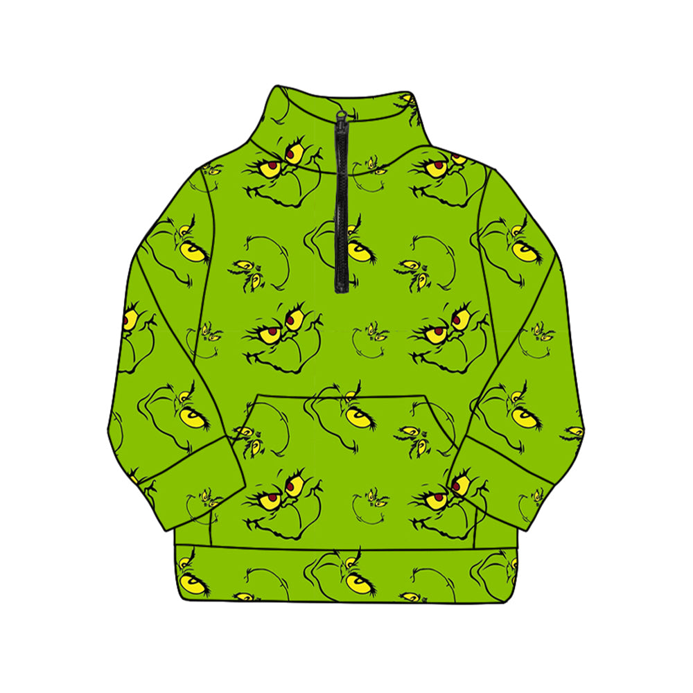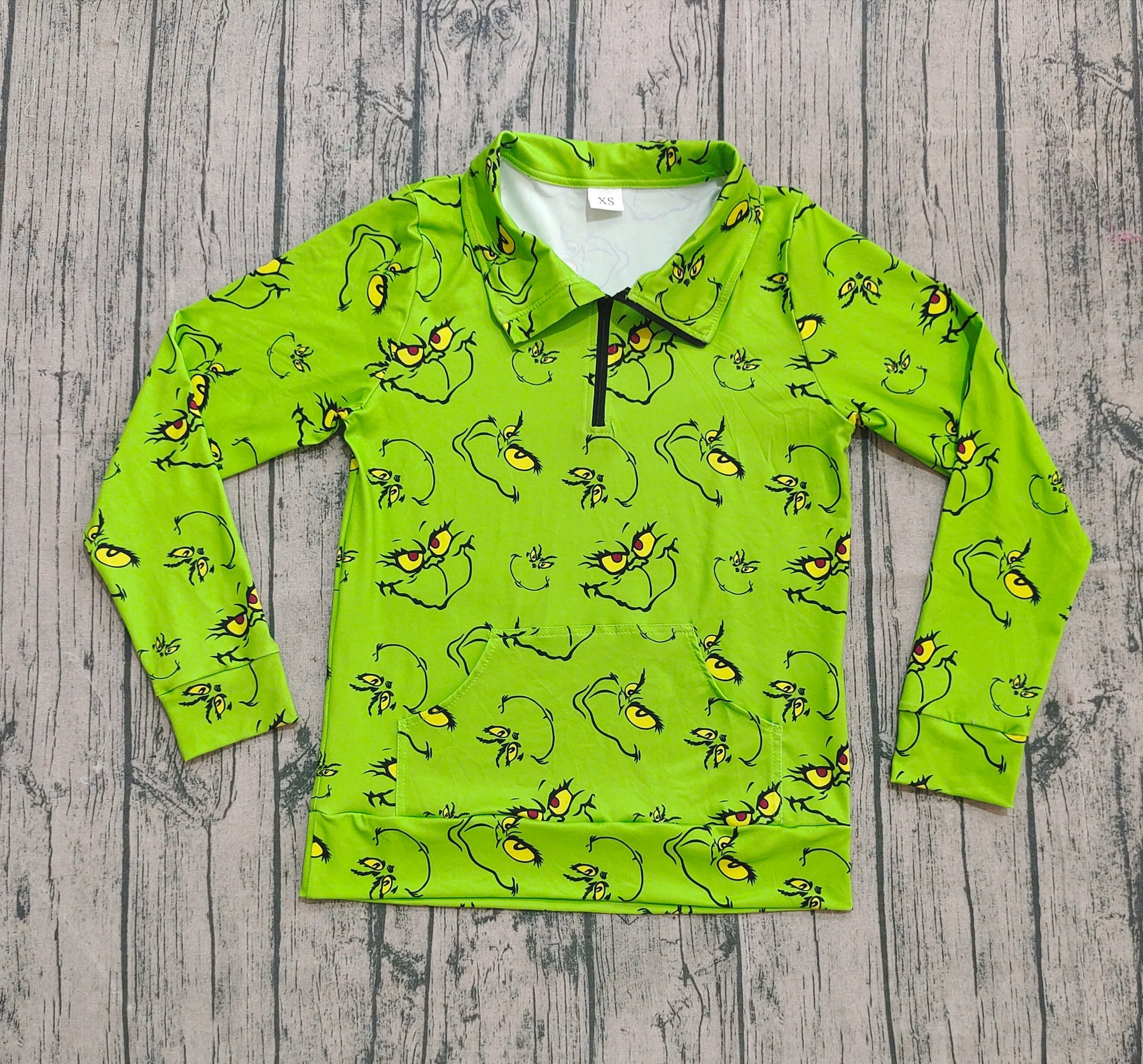 GT1173 Adult Women Green Face Plaid Pocket Zipper Pullover Tops D 904