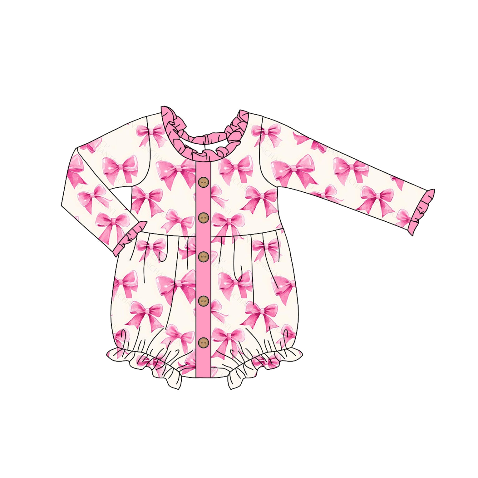 presale LR2024 Beige long-sleeved bodysuit with pink lace buttons and bow pattern 2024 9.21