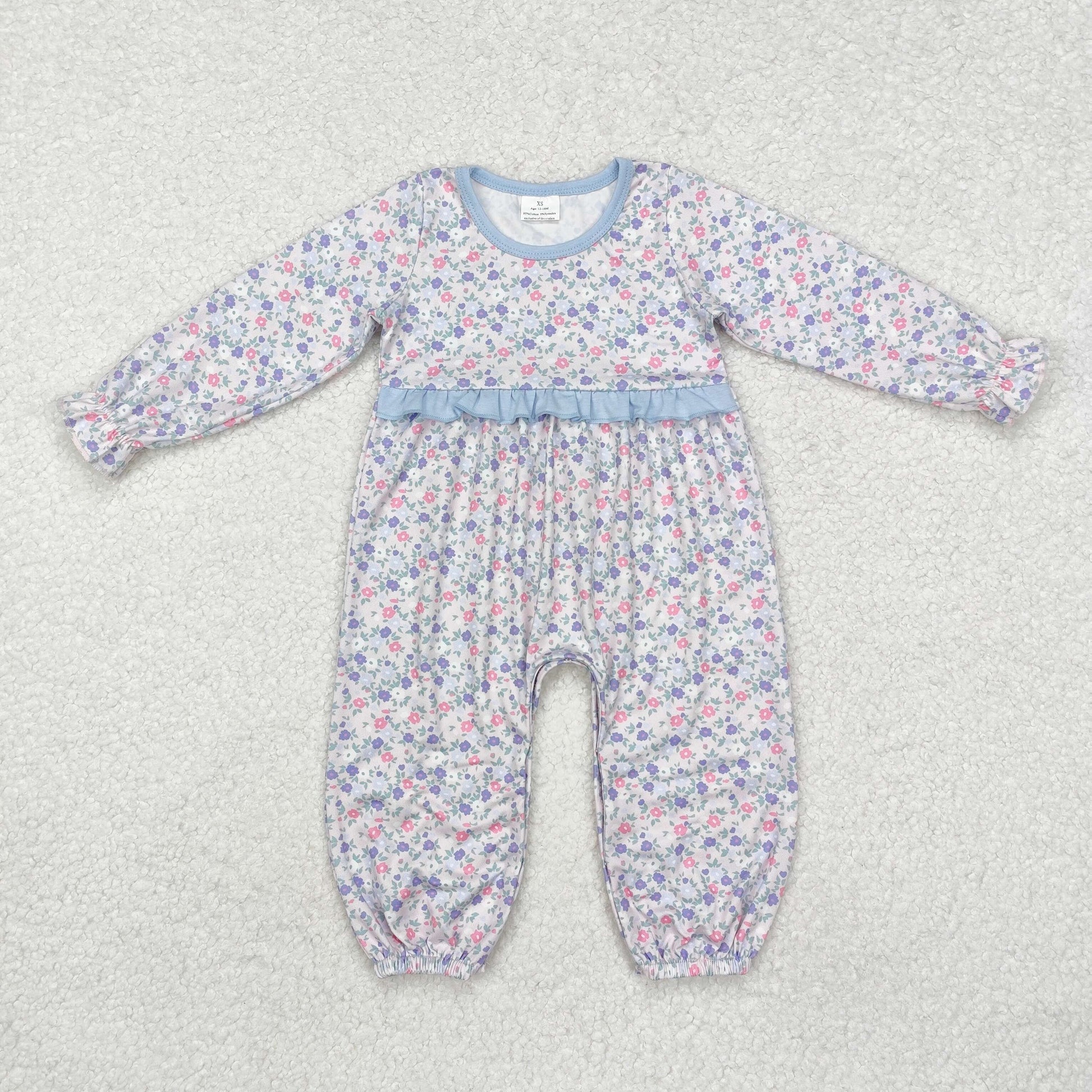 LR2072 Floral Blue Lace Long Sleeve Bodysuit