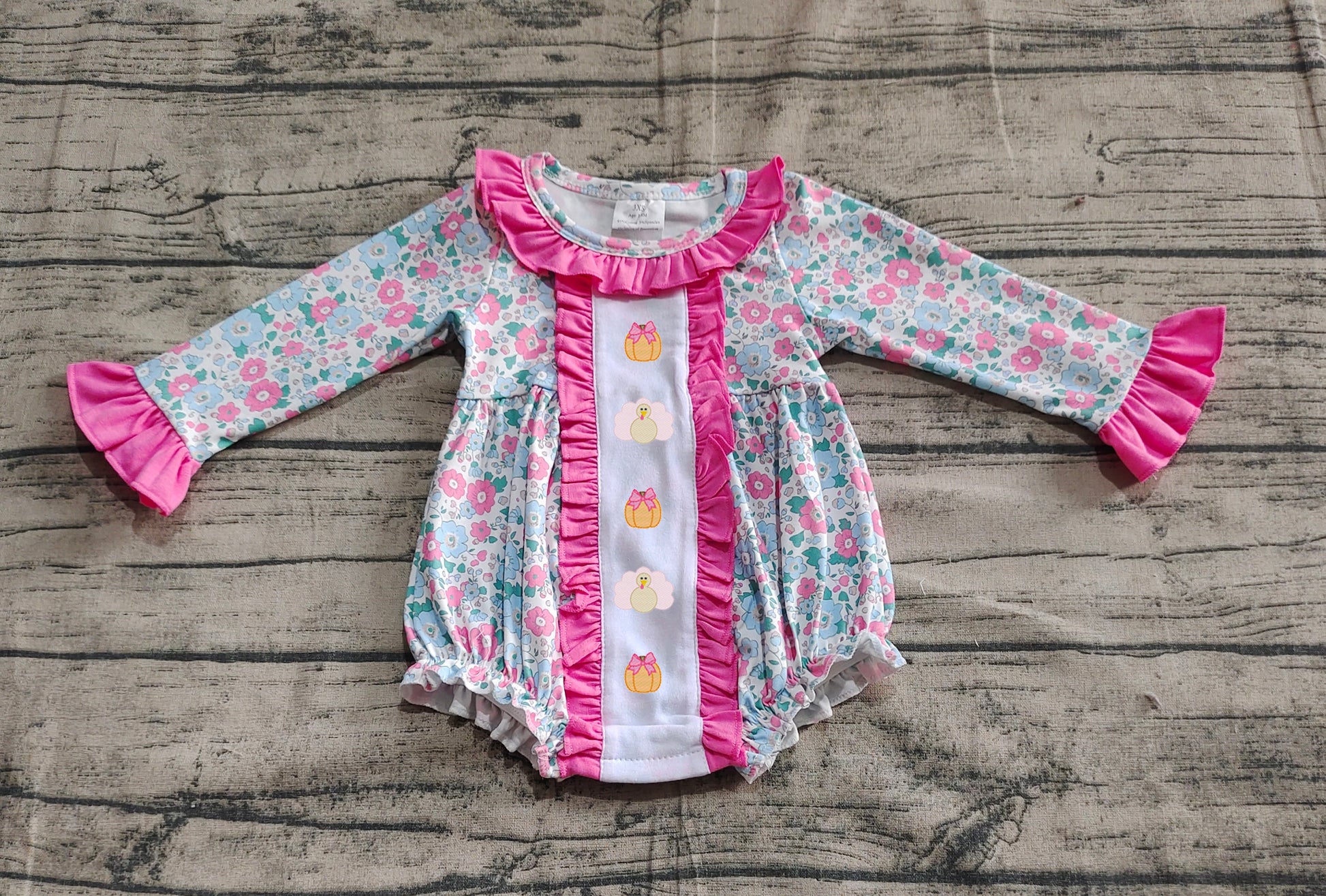 LR2219 Long sleeves floral pumpkin turkey girls Thanksgiving romper D 6.24