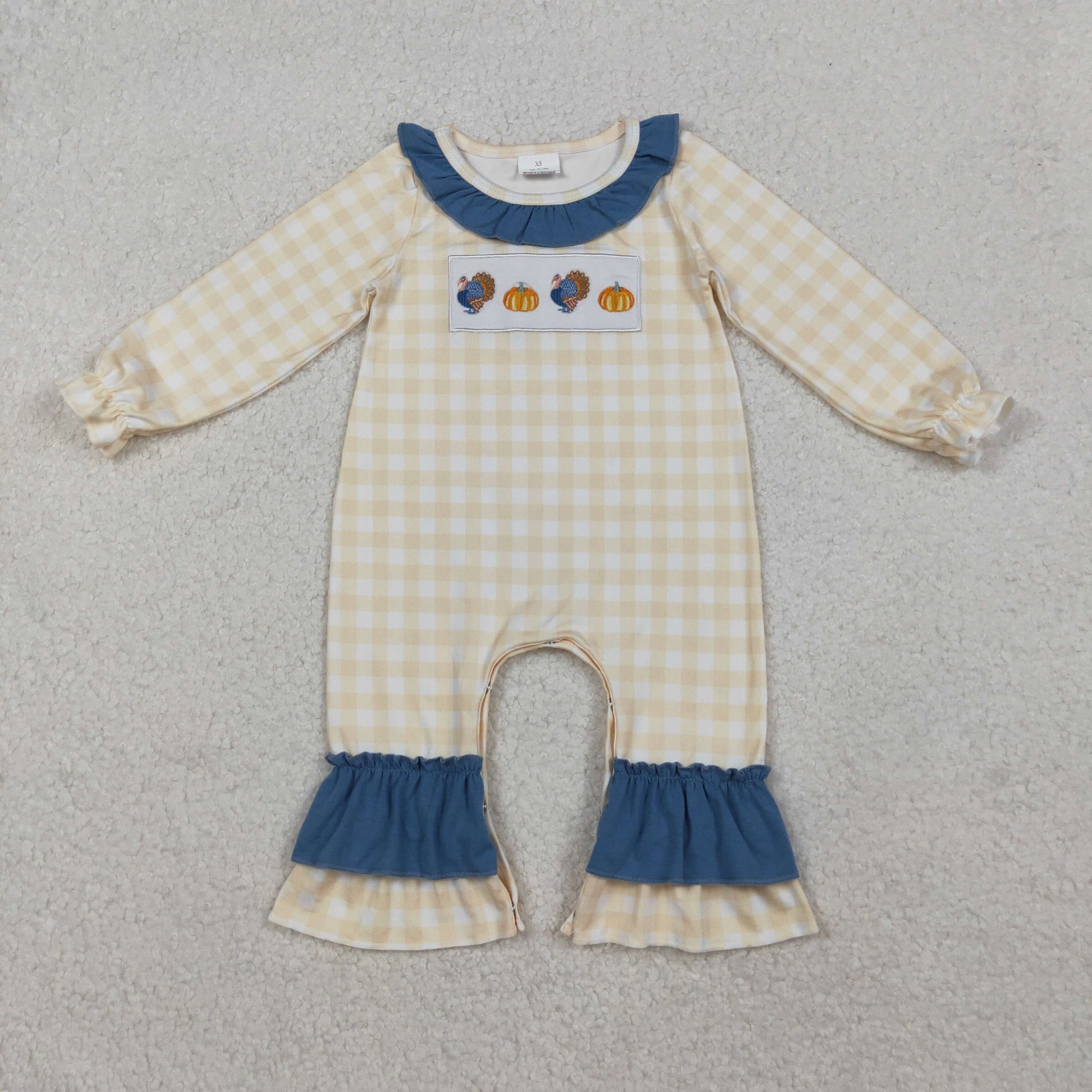 LR2438 Baby Girls Plaid Long Sleeves Turkey Pumpkins Ruffle Pant Rompers D 1022
