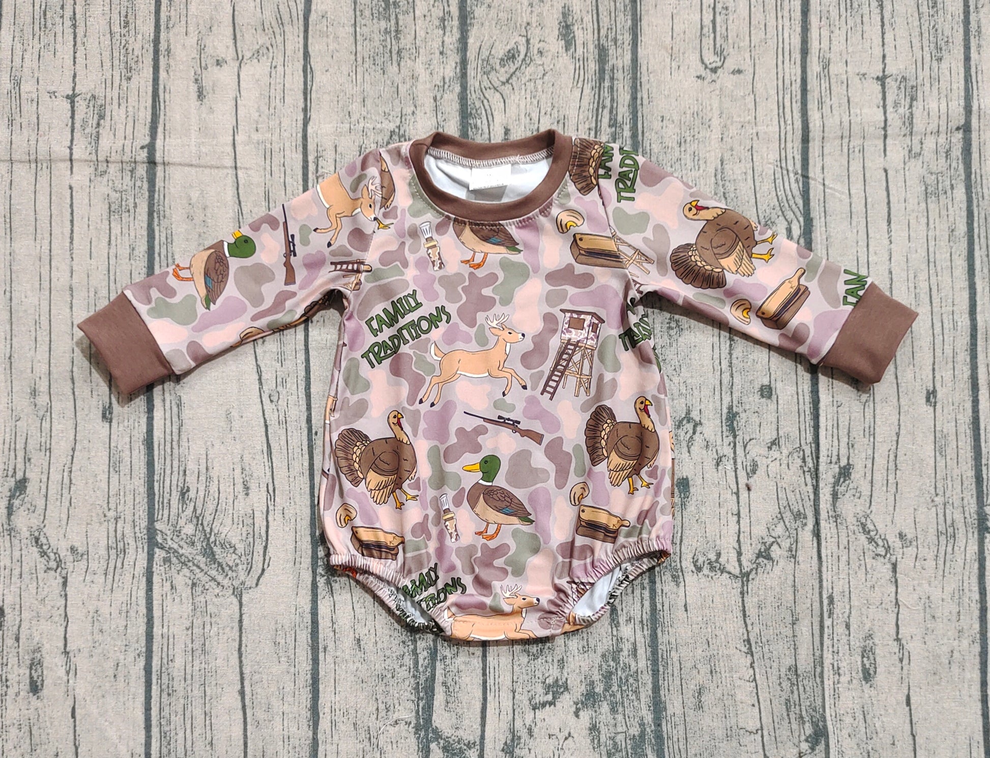 LR2440 Baby Boys Long Sleeves Turkey Ducks Camo Hunting Rompers D 910