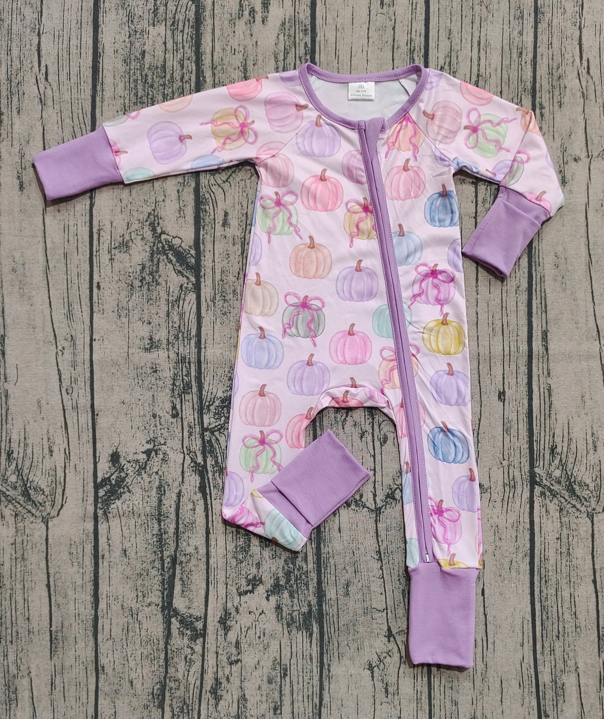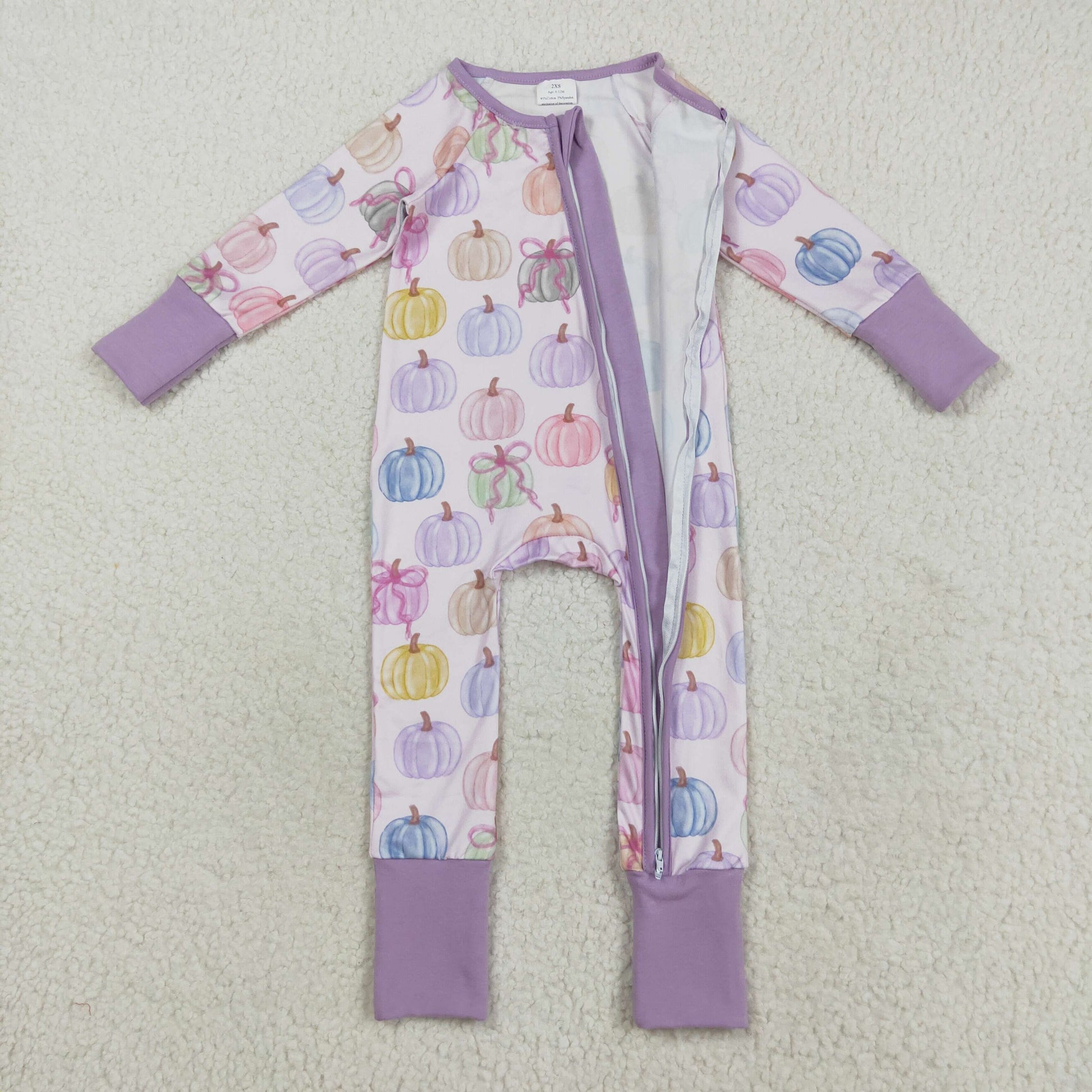 LR2442 Baby Girls Long Sleeves Colorful Bows Pumpkins Zipper Rompers D 7.15