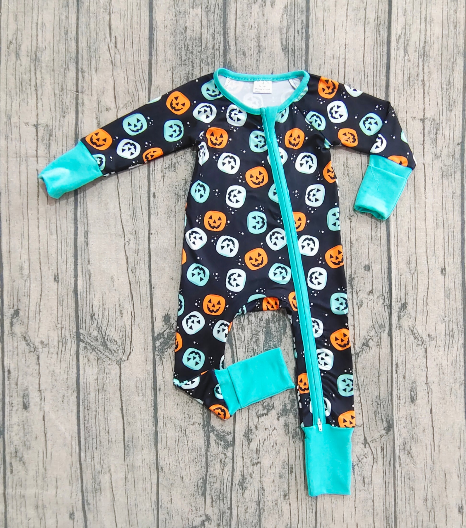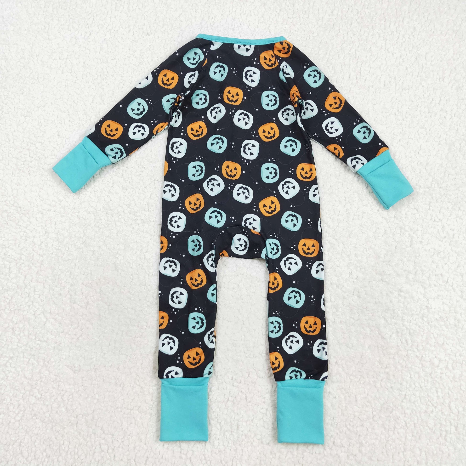 LR2465 Baby Boys Long Sleeves Colorful Ghost Pumpkins Zipper Pant Rompers D 821