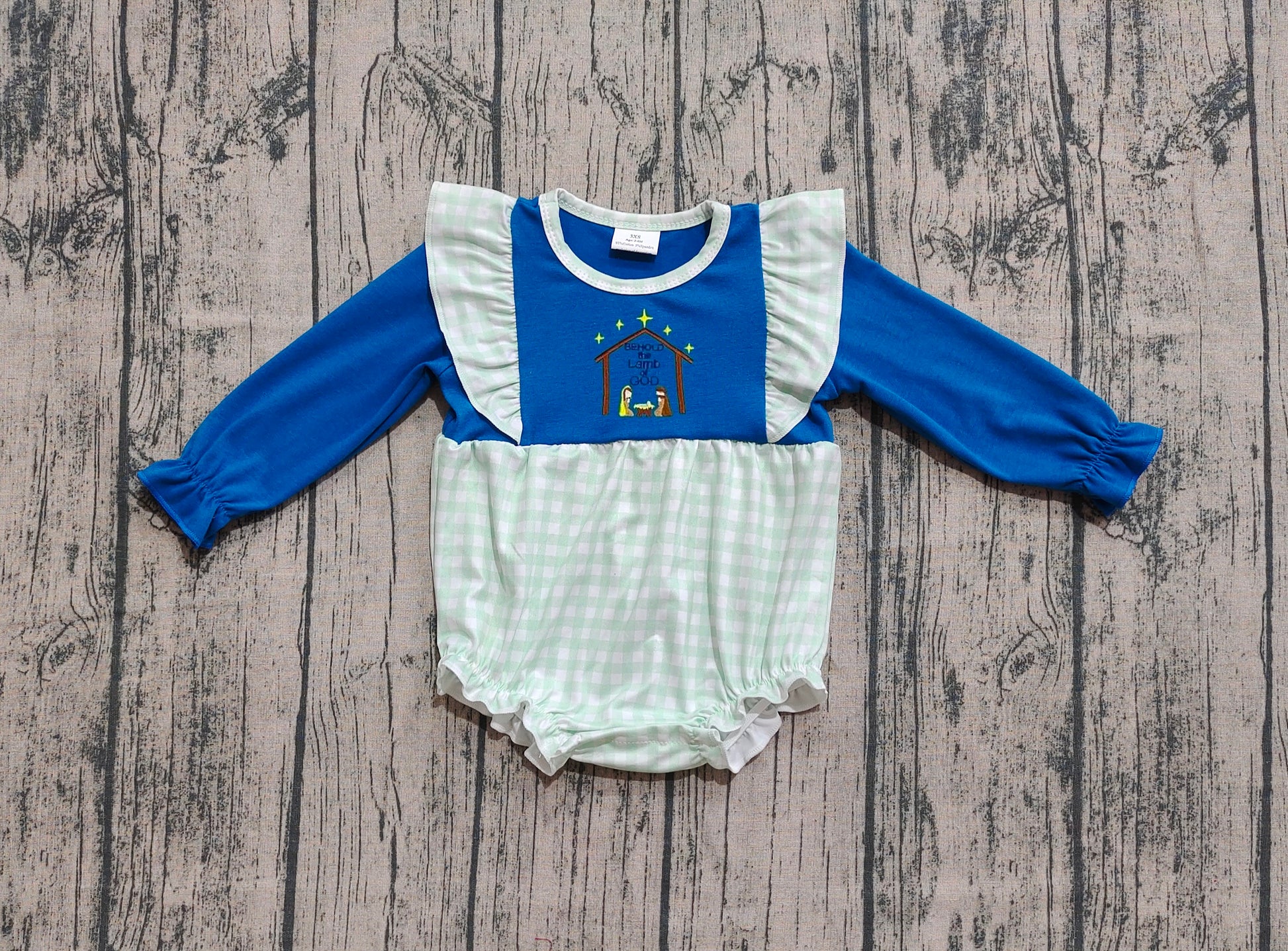LR2477 Baby Girls Long Ruffle Sleeves Nativity Christmas Rompers D 925