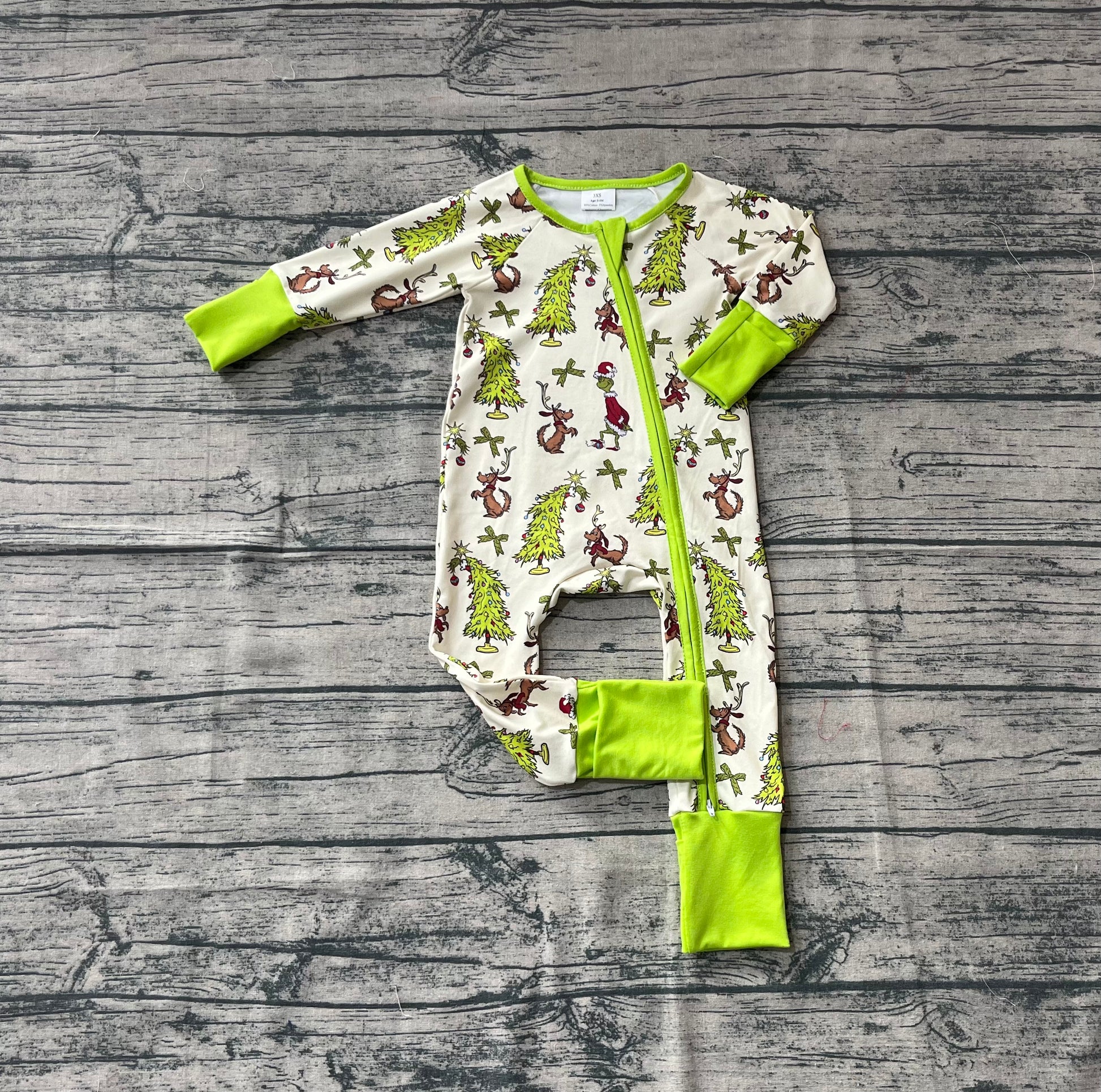 LR2481 Baby Boys Long Sleeves Christmas Trees Dogs Zipper Rompers D 821