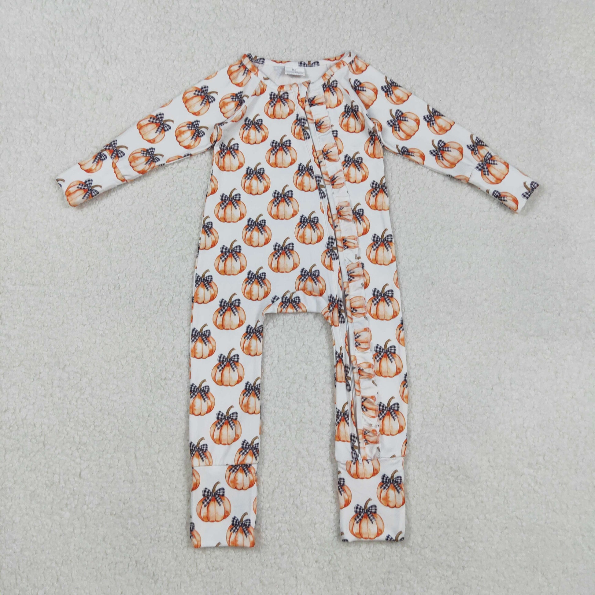 LR2557 Baby Boys Bows Pumpkins Fall Zipper Footie Rompers D 903