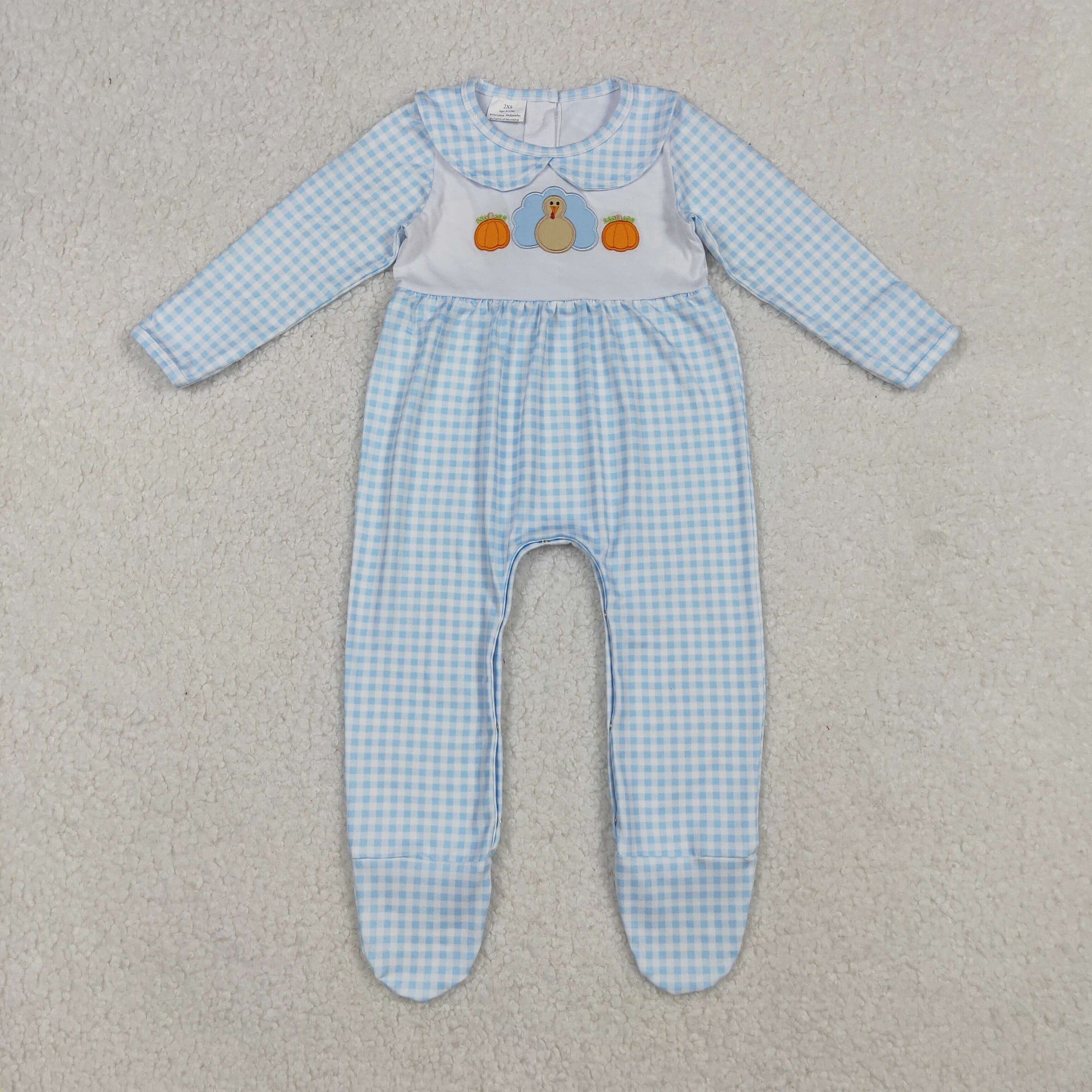 LR2561 Embroidery Pumpkins Turkey Baby Infant Thanksgiving Fall Footed Rompers D 8.9