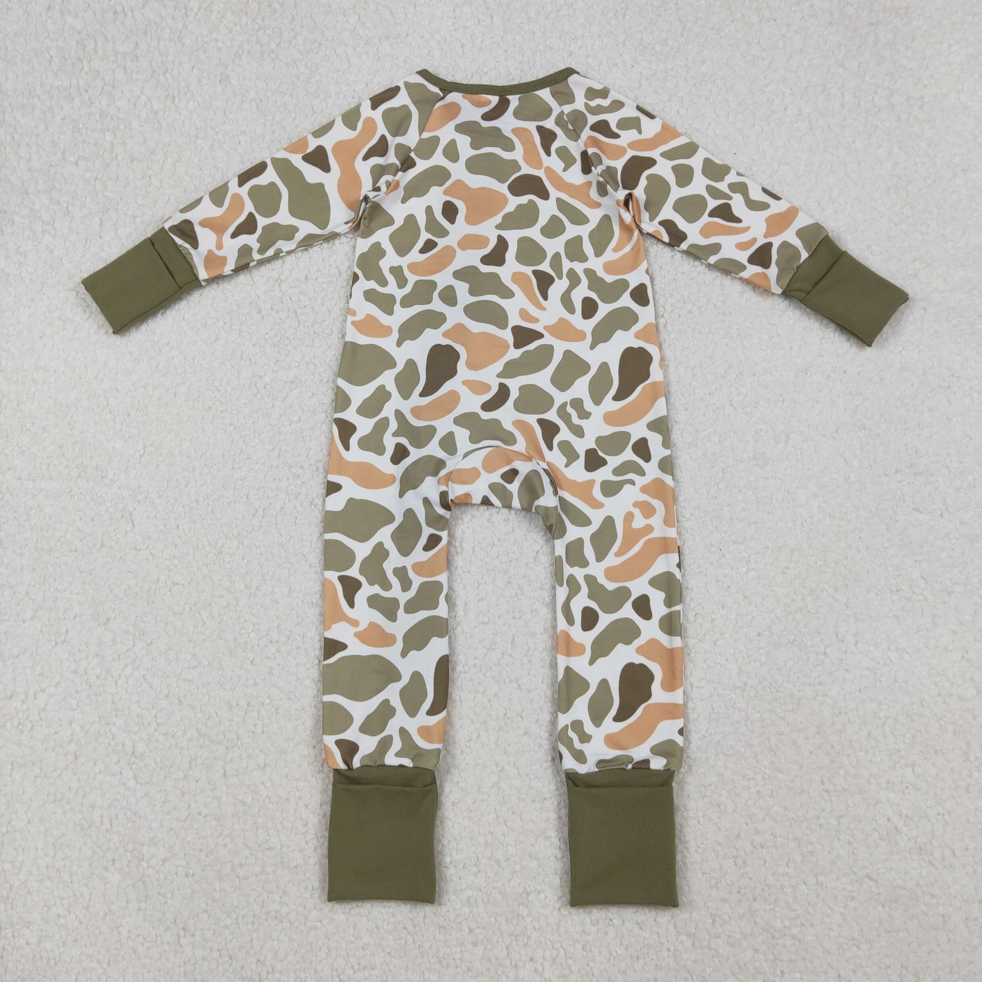 LR2578 Baby Boys Green Yellow Camo Western Zipper Footie Rompers D 926