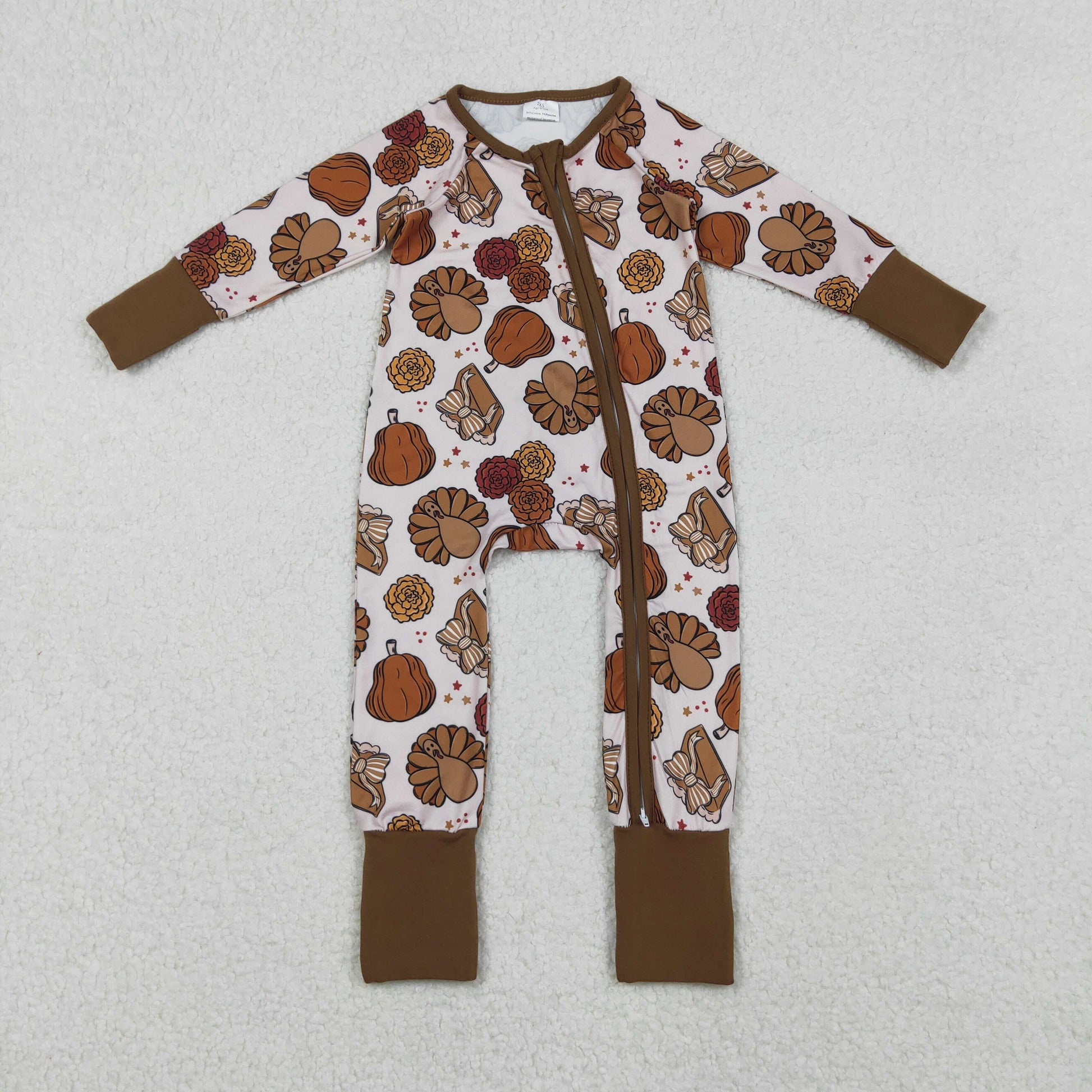 LR2690 Baby Boys Pie Turkey Pumpkins Thanksgiving Zipper Footie Rompers D 1023