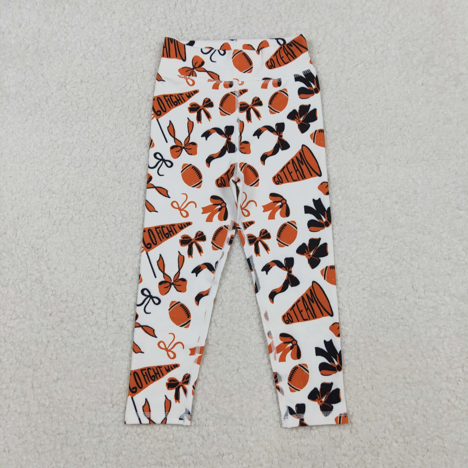 P0847 Baby Girls Orange Black Go Team Footballs Bows Yoga Legging Pants D 1022