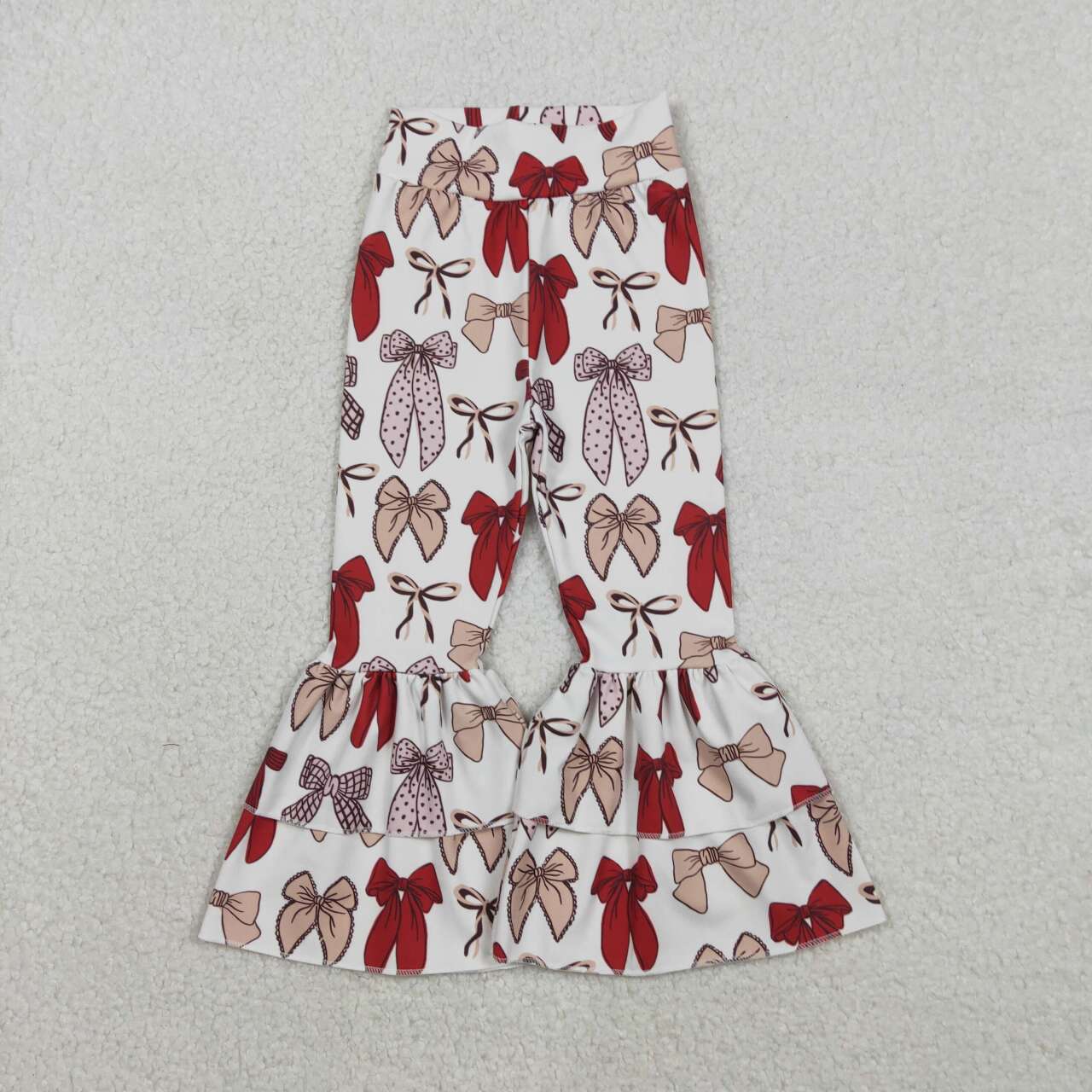 P0885 Baby Girls Red Bows Plaid Yoga Bell Bottom Pants D 1203
