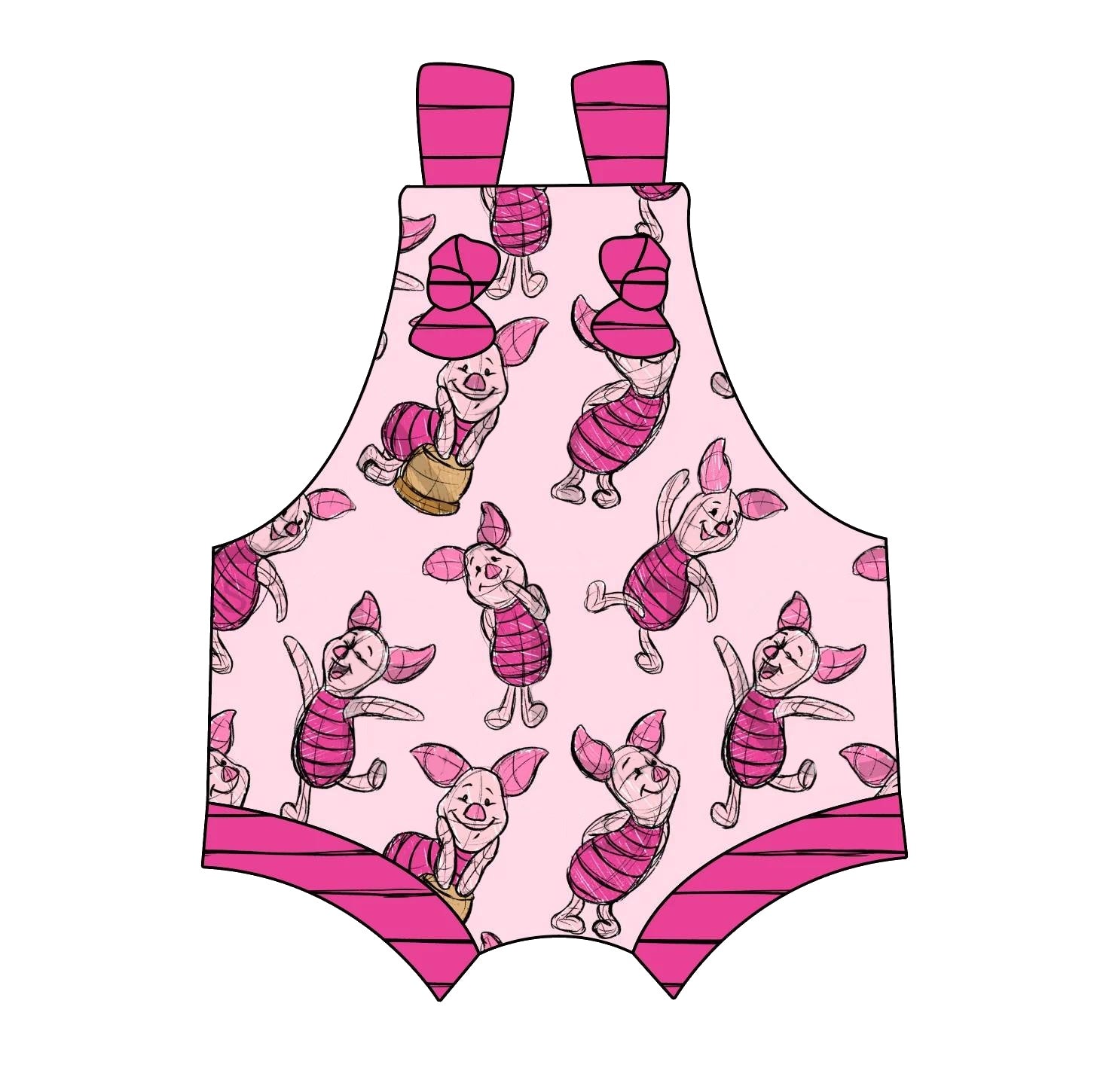 presale SR1740 Cartoon Piggy Pink Suspender Jumpsuit