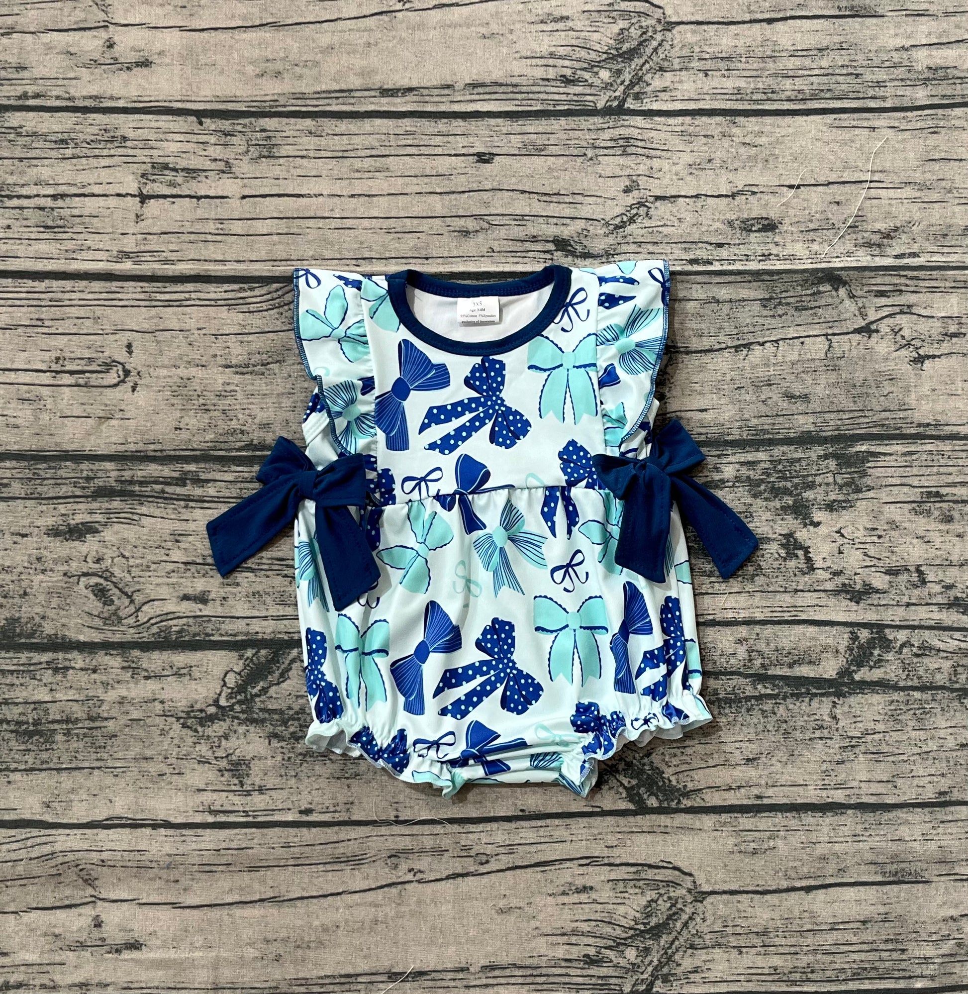 SR3121 Baby Girls Hot Blue Flutter Sleeves Bows Ruffle Rompers D 821