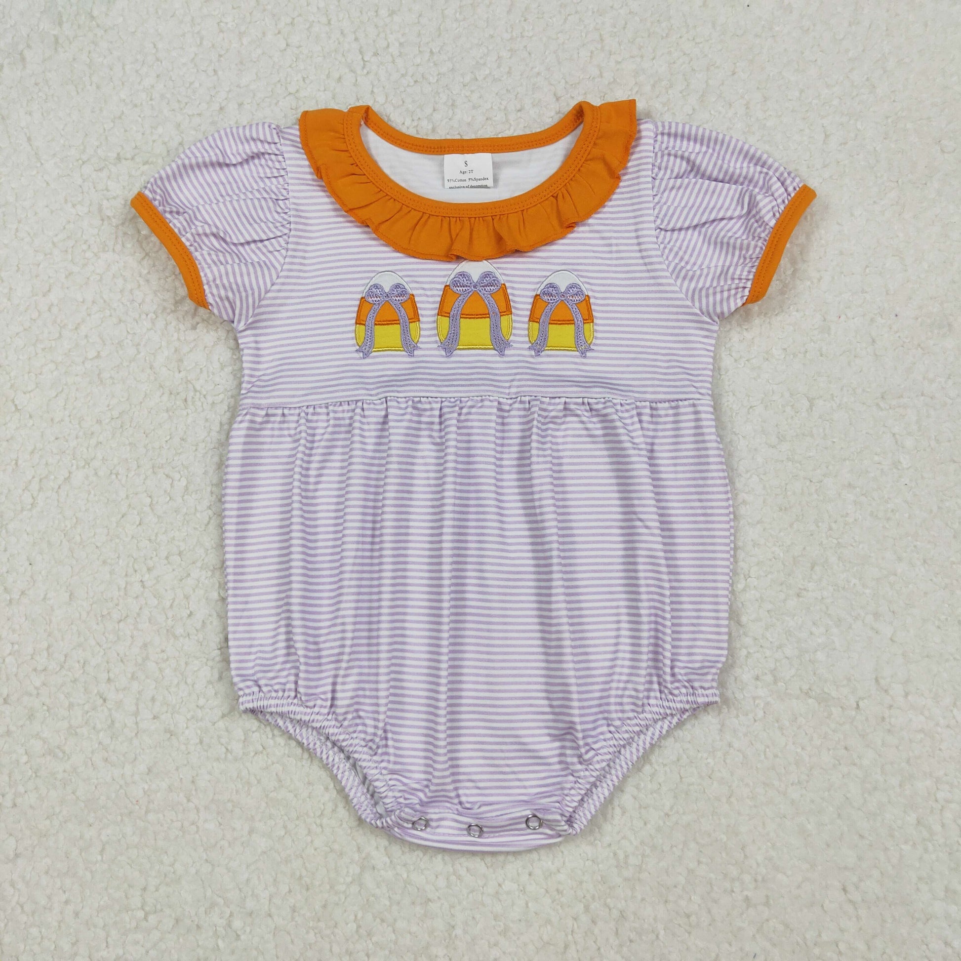 SR3202 Embroidery Baby Girls Lavender Stripe Bows Candy Halloween Rompers D 925