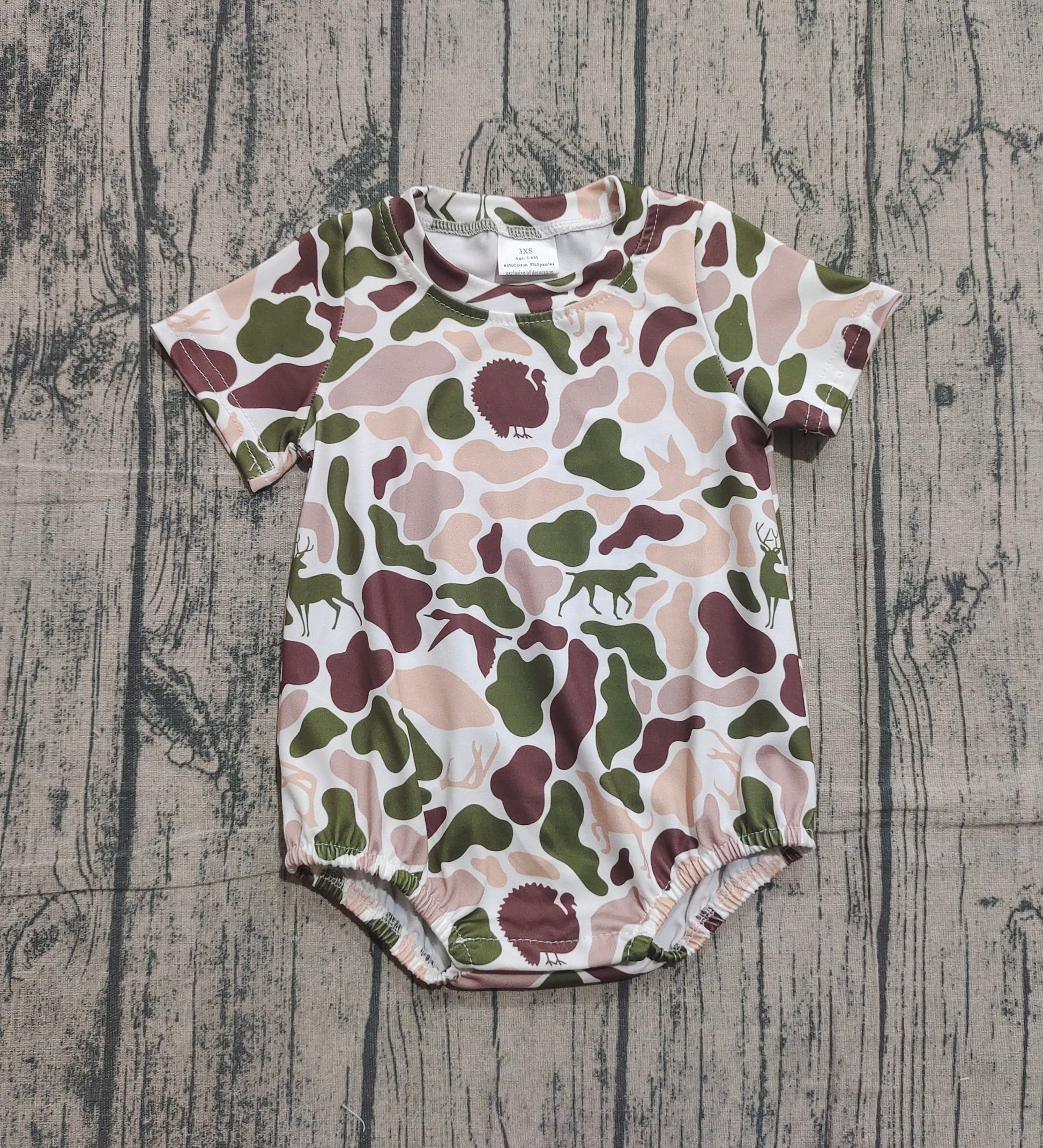 SR3451 Baby Boys Ducks Deer Dogs Camo Short Sleeve Southern Rompers D 1202