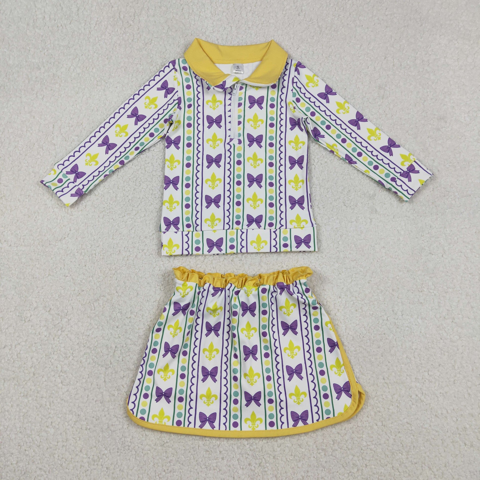 Sibling Baby Girls Mardi Gras Anchors Bows Stripe Zip Pullover Top with Skirt And Yoga Shorts Active Wear Set Knee-Length Dress Option
