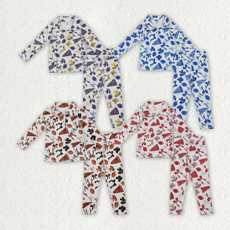 Sibling Baby Girls Bows Footballs Go Team Zipper Pullover Leggings Yoga Active Clothes Sets D 1122