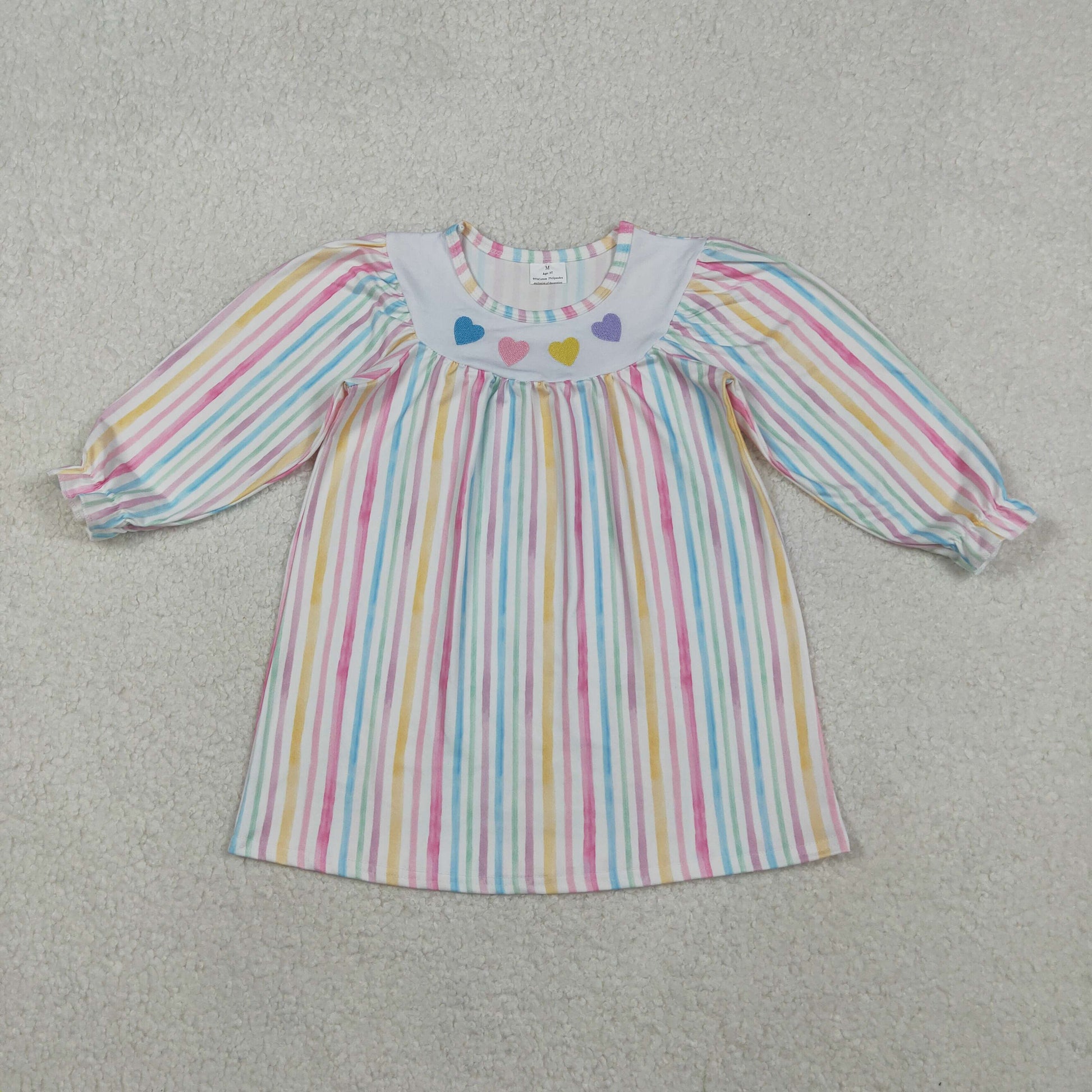 Sibling Baby Girls Colorful Stripe Embroidery Hearts Ruffle Sleeve Knee Length Dress Rompers D 1111
