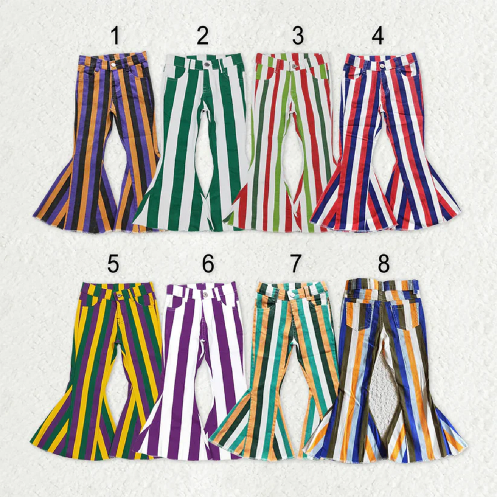 Sibling Baby Girls Colorful Stripes Bell Bottom Denim Jeans Pants D 927