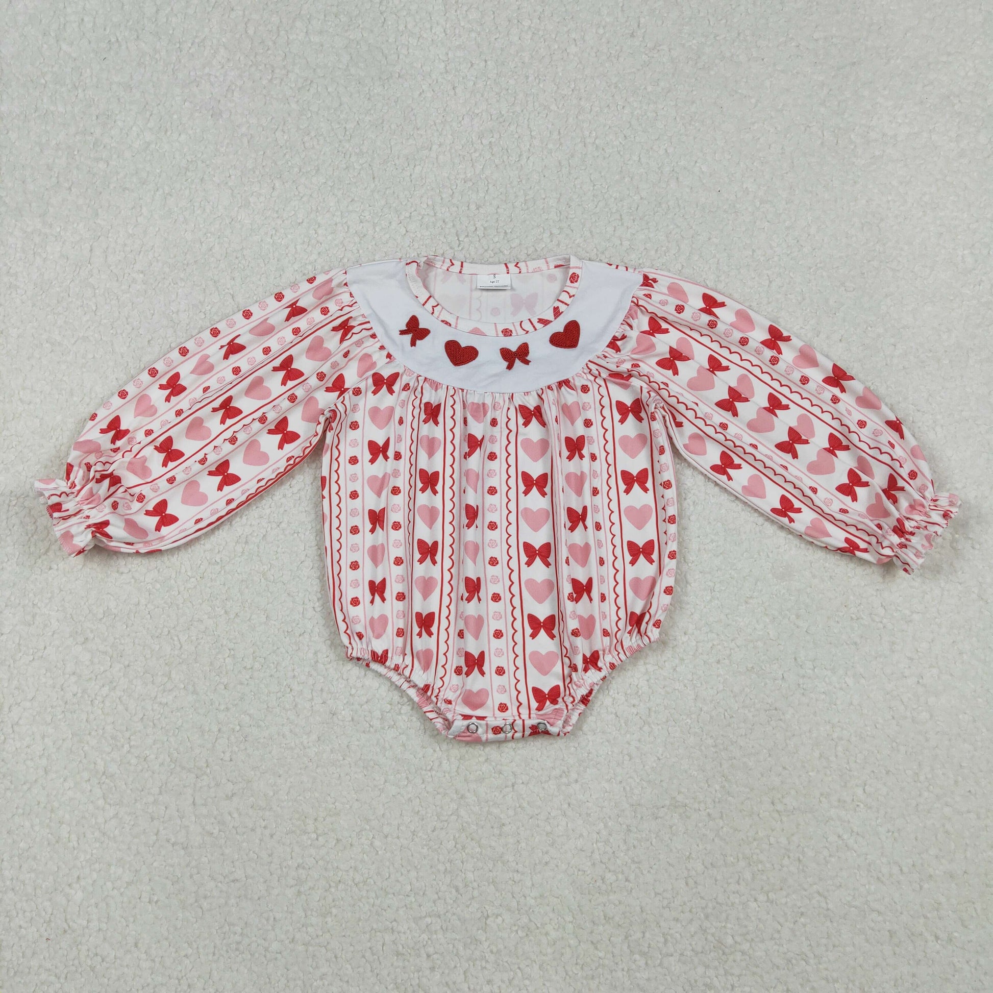 Sibling Embroidery Hearts Bows Baby Girls Valentine Knee Length Dresses Ruffle Rompers D 1022