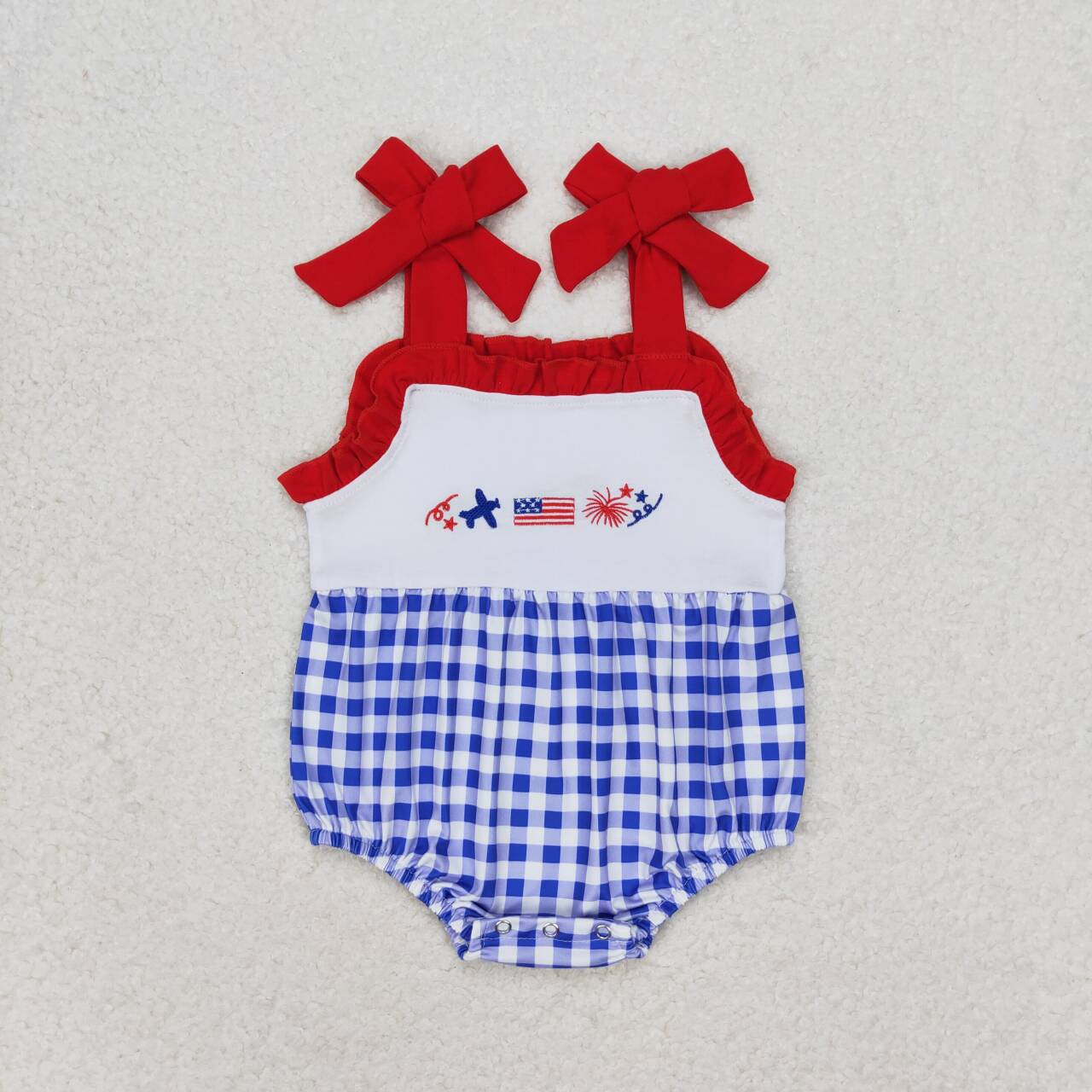SR1030 Embroidery Airplane Flag Fireworks Red Lace Suspender Bodysuit