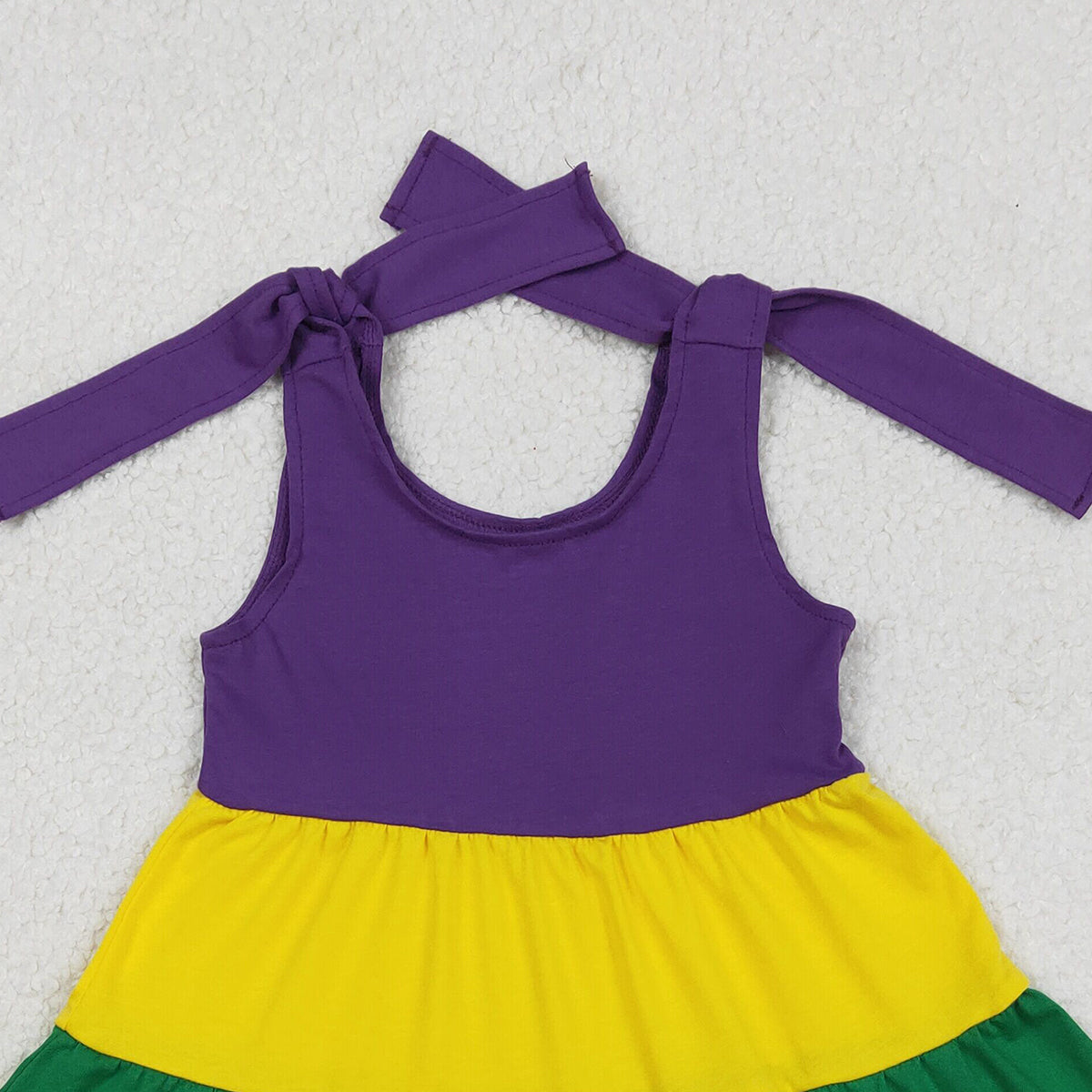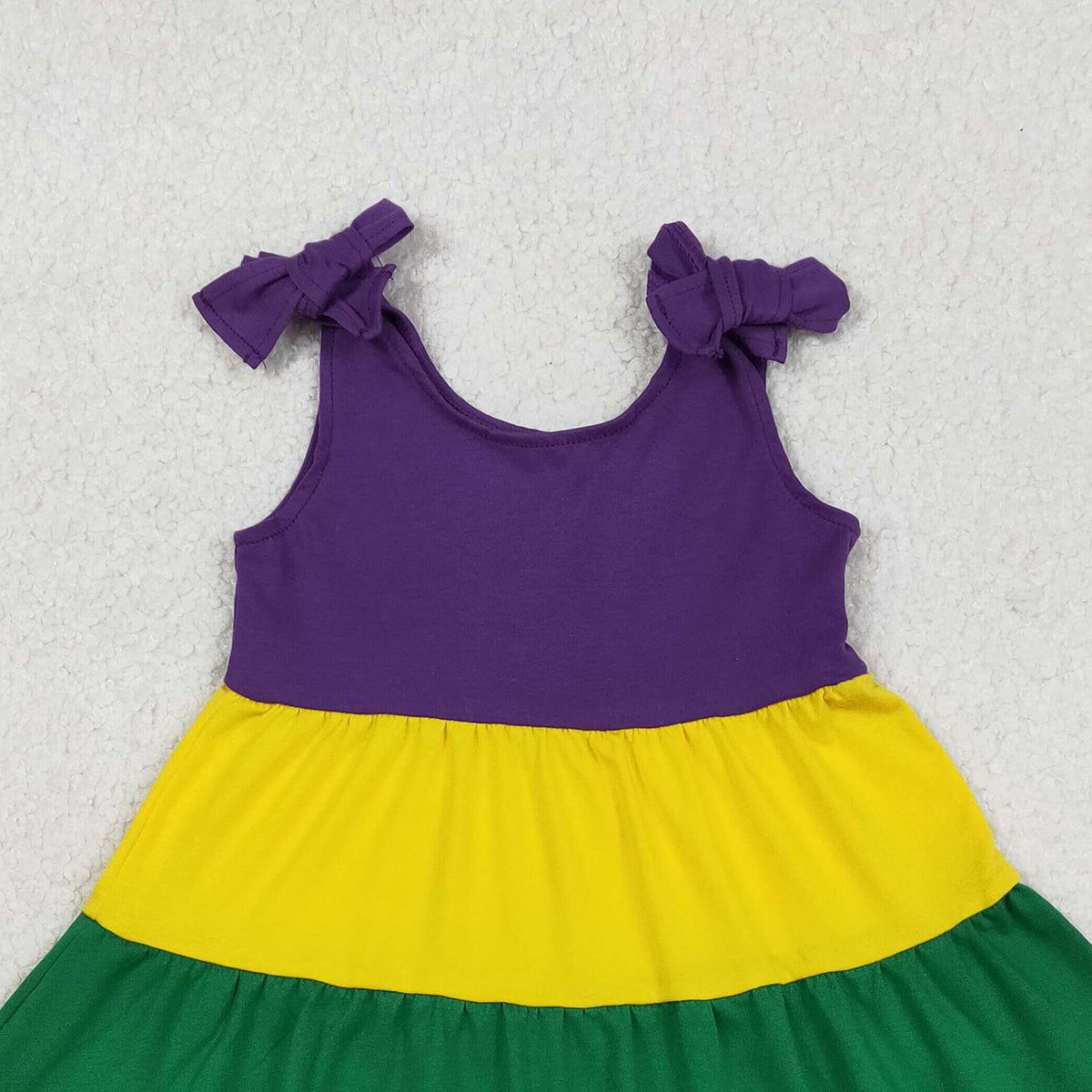 Baby Girls Patchwork Ruffle Knee-Length Dress with Bows Strap Mardi Gras Theme